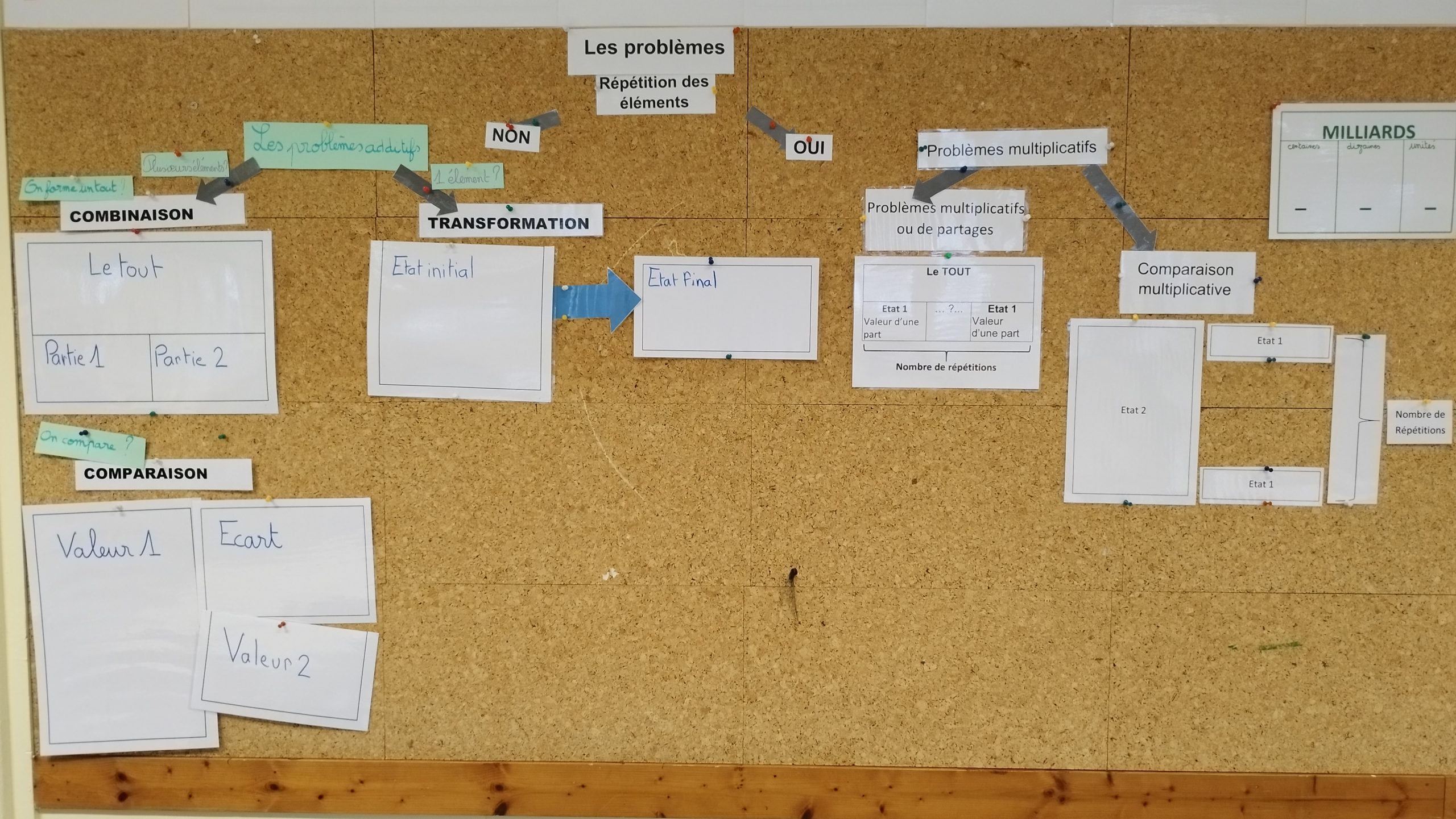 Quelques exemples de supports collectifs qui permettent de soutenir une activité langagière lors des activités de résolution.- Pas à pas de la résolution de problèmes simples